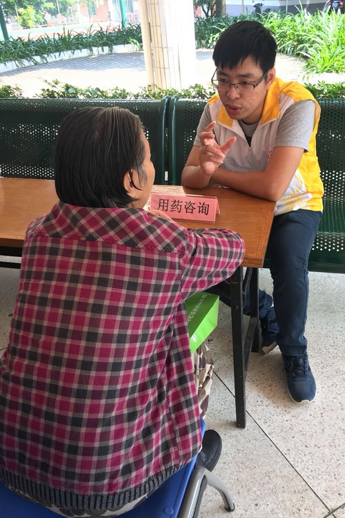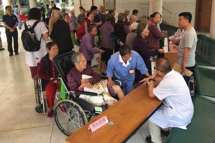 活動(dòng)的第二階段是義診,由廣州醫(yī)科大學(xué)附屬第一醫(yī)院和廣州軍區(qū)廣州總醫(yī)院醫(yī)療團(tuán)隊(duì)皮膚科、眼科、風(fēng)濕科、神經(jīng)科、內(nèi)科、藥物咨詢等領(lǐng)域?qū)<页鲈\,老人們結(jié)合自己身體狀況選擇,排隊(duì)參加義診或咨詢。