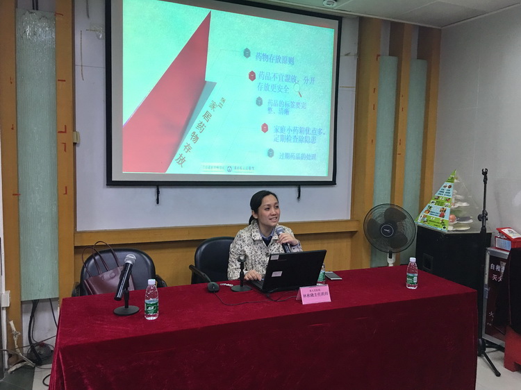 在社區(qū)衛(wèi)生服務(wù)中心健康宣教室,省人民醫(yī)院林秋曉主任藥師作了《妙用“家庭藥箱”與如何讀懂藥品說明書》為主題的安全用藥指導(dǎo)講座。就家庭藥箱的功能、特點(diǎn),家庭藥品保管、儲(chǔ)藏(防曬、防潮)注意事項(xiàng),正確認(rèn)識(shí)常用藥品的劑型,藥品常用量與特殊人群用量的區(qū)別,藥品在拆封前和拆封后不同時(shí)期的有效期,服藥時(shí)點(diǎn)和送服介質(zhì)等,為在場(chǎng)近百名群眾和社區(qū)工作人員帶來一場(chǎng)精彩、實(shí)用的家庭用藥指導(dǎo)講座。