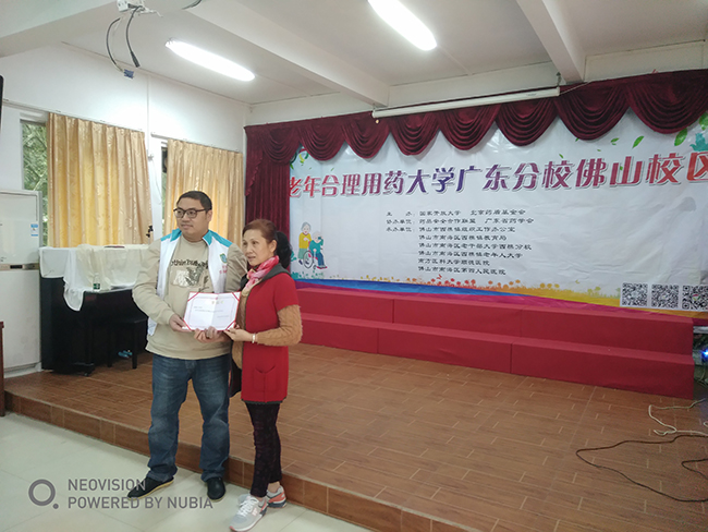 隨著我國進(jìn)入人口老齡化社會(huì),提升老年人健康水平成為目前我國醫(yī)療衛(wèi)生事業(yè)改革的主要任務(wù)。為進(jìn)一步加強(qiáng)老年人用藥管理,特別是慢病患者安全用藥知識(shí),國家開放大學(xué)聯(lián)合北京藥盾基金會(huì)先后在北京、廣東、上海和武漢四省市試行開展“老年合理用藥大學(xué)”,通過以點(diǎn)帶面的方式宣傳老年人安全用藥知識(shí)。2017年12月9-10日在廣東省佛山市南海區(qū)西樵鎮(zhèn)老年干部中心,南方醫(yī)科大學(xué)順德醫(yī)院和南海區(qū)第四人民醫(yī)院聯(lián)合承辦了“老年合理用藥大學(xué)西樵分校開班”活動(dòng)?;顒?dòng)同時(shí)邀請(qǐng)了廣州市第一人民醫(yī)院、暨南大學(xué)附屬第一醫(yī)院、番禺何賢紀(jì)念醫(yī)院、廣州醫(yī)科大學(xué)附屬第一醫(yī)院、暨南大學(xué)附屬口腔醫(yī)院共20名藥學(xué)志愿者參加。