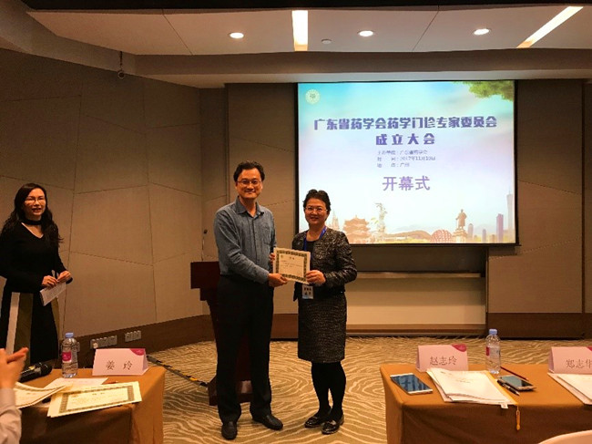 廣東省藥學(xué)會藥學(xué)門診專家委員會經(jīng)過前期的發(fā)起、醞釀和籌備,于2017年11月10日召開正式成立大會。廣東省衛(wèi)生計(jì)生委藥政處副處長趙志玲、廣東省人民醫(yī)院林展翼副院長、醫(yī)務(wù)處副處長姜立、東川門診部主任高國棟、廣東省藥學(xué)會秘書長鄭志華等出席了會議并致辭;省藥學(xué)會秘書長鄭志華會上宣讀了同意專業(yè)組織成立、同意專業(yè)組織領(lǐng)導(dǎo)任職的決定,同時宣讀專業(yè)組織全體名單,并給主任委員頒發(fā)聘書。隨后由省藥學(xué)會領(lǐng)導(dǎo)、專委會主任委員以及顧問分別給副主任委員和秘書頒發(fā)了聘書。廣東省藥學(xué)會藥學(xué)門診專家委員會從此正式成立,并接著舉辦了“藥師門診技能提高班”。