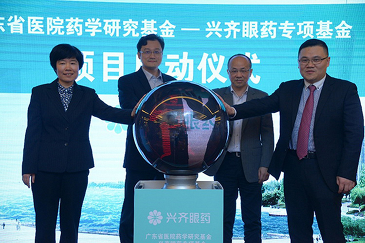 鄭志華秘書長、林曉峰副院長、王延?xùn)|主任委員和沈陽興齊藥業(yè)代表共同啟動了沈陽興齊眼科專項(xiàng)基金