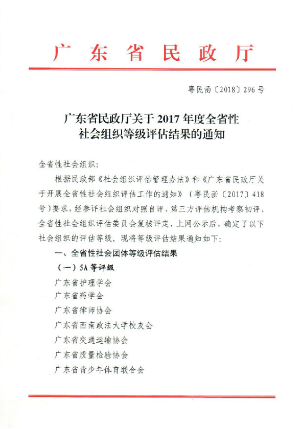 喜訊:《廣東省民政廳關于2017年度全省性社會組織登記評估結果的通知》(粵民函〔2018〕296號)公布,廣東省藥學會獲評社會組織最高等級—5A級。這是對本會歷年來工作業(yè)績的充分肯定。感謝全省會員、全體理事、秘書處全體工作人員的共同努力。
