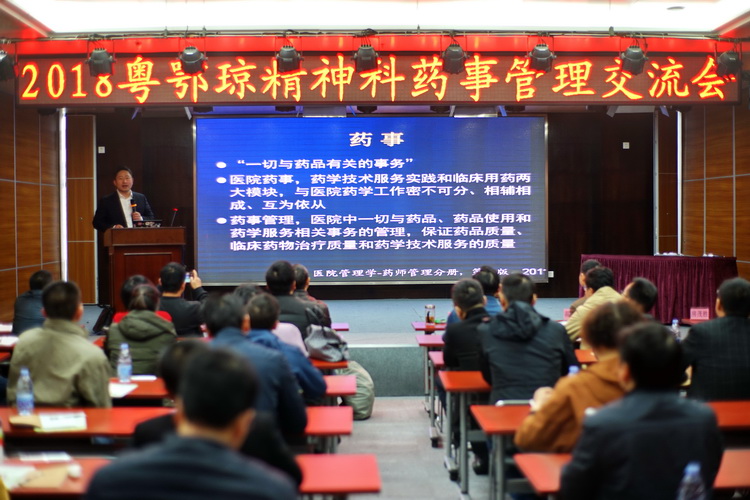 廣東省藥學會副秘書長、《今日藥學》雜志社社長陳民喜、武漢市精神衛(wèi)生中心院長李毅教授,精神藥學專委會主任委員、廣州市惠愛醫(yī)院藥學部溫預關主任分別致辭,來自粵、鄂、瓊三省精神衛(wèi)生領域50多位藥學管理人員參加了交流會。