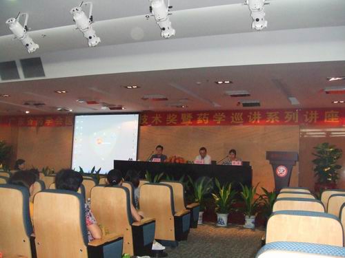 廣東省藥學會醫(yī)院藥學科學技術(shù)獎是經(jīng)廣東省科技廳核準的、我省唯一的醫(yī)院藥學專門獎項。為充分發(fā)揮本獎的專家資源,在葛蘭素史克公司的大力支持下,我會于今年開始在各區(qū)市舉辦科技獎巡講活動。廣州市番禺區(qū)的巡講于2010年8月20日在番禺中心醫(yī)院舉行。會議由番禺中心醫(yī)院藥劑科楊輝主任主持,歐陽玉林副院長和我會鄭志華副秘書長致辭。會議邀請了暨南大學附屬第一醫(yī)院吳曉松主任和廣州中醫(yī)藥大學第一附屬醫(yī)院唐洪梅主任就藥品安全與管理、疏肝健脾止瀉法對腹瀉型IBS的作用機理研究進行演講,還邀請了南方醫(yī)院心內(nèi)科郭志剛主任、中山大學附屬第三醫(yī)院感染科鄧子德主任分別就抗凝和乙肝藥物的臨床應用進行了介紹。為使更多藥師接受培訓,會議安排在周末下午下班后進行。來自番禺各醫(yī)院約100余名藥師參加了會議。