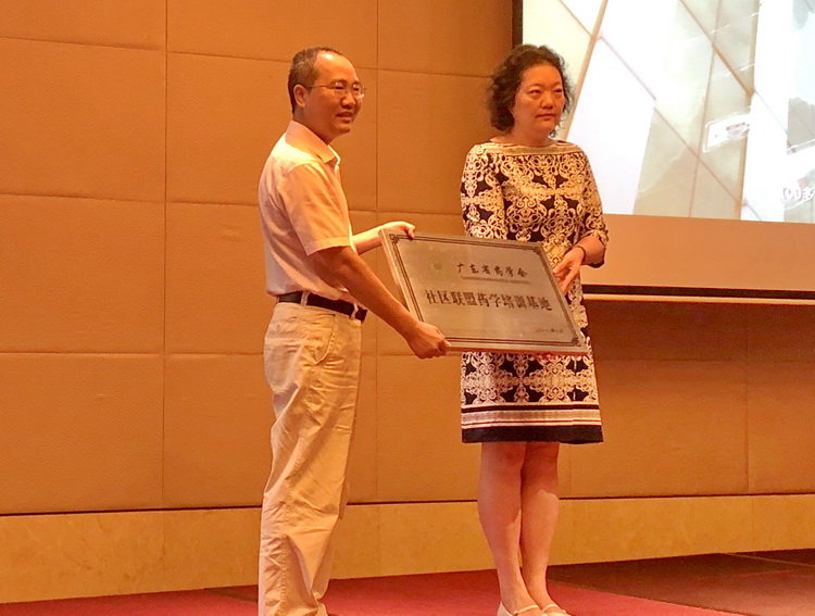 第二部分:7月21日上午,是以“慢病管理”為主題的學(xué)術(shù)報告。學(xué)術(shù)報告開始前,陳民喜書記向廣州醫(yī)科大學(xué)附屬第一醫(yī)院藥學(xué)部魏理主任授予了“廣東省藥學(xué)會社區(qū)聯(lián)盟藥學(xué)培訓(xùn)基地”牌匾。