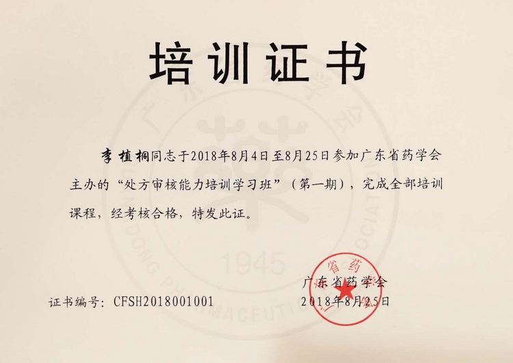 培訓(xùn)結(jié)束后,經(jīng)考核成績合格的藥師,由廣東省藥學(xué)會頒發(fā)培訓(xùn)學(xué)習(xí)證書。