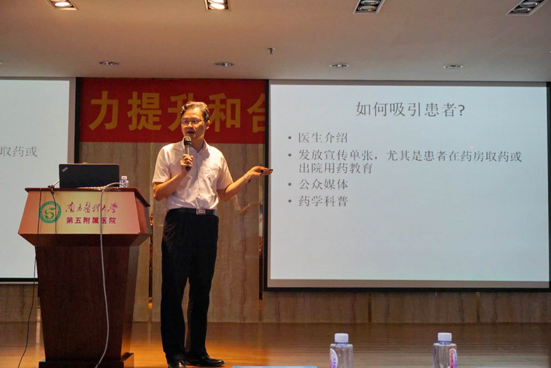 鄭志華秘書長、劉世霆主任、陳吉生主任、邱凱鋒副主任分別為學(xué)員們講解了《藥學(xué)門診如何開展》、《新醫(yī)改背景下藥師定位的思考》、《仿制藥一致性評價(jià)政策的思考》、《藥師能力模型解讀》,從不同角度闡述了藥師服務(wù)轉(zhuǎn)型的重要性。南方醫(yī)科大學(xué)第五附屬醫(yī)院陳剛主任、郭建平主任、王鵬主任分別從胸痛中心ACS患者的藥物管理、糖尿病慢病管理與合理用藥、抗菌藥物醫(yī)院系統(tǒng)管理等方面向?qū)W員分享如何加強(qiáng)臨床合理用藥。最后,黃彩玲組長與大家分享PIVAS高分通過評審的經(jīng)驗(yàn)。