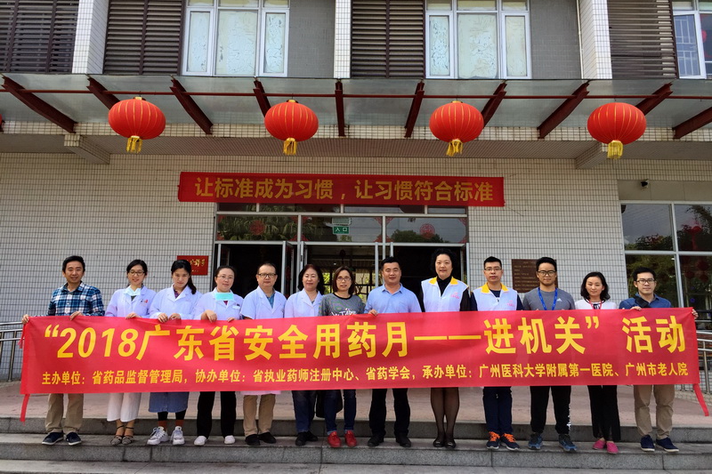 “2018廣東省安全用藥月――進機關”活動于2018年11月14日在廣州市老人院舉行。本次活動由廣東省藥品監(jiān)督管理局主辦,廣東省執(zhí)業(yè)藥師注冊中心、廣東省藥學會協(xié)辦,廣州醫(yī)科大學附屬第一醫(yī)院承辦?;顒友埩似つw科、眼科、風濕科醫(yī)生和藥師共同組成專家團隊,以“安全用藥”為主題開展活動。