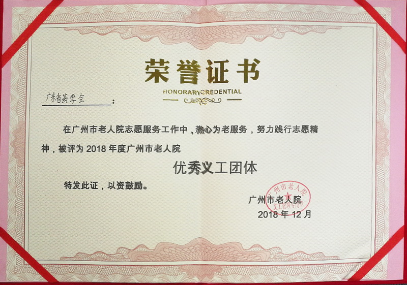 12月9日,在廣州市老人院舉行的2018年度“義工表彰大會”上,本會被評為“優(yōu)秀義工團體”。