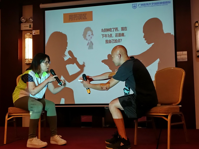 腫瘤用藥分會(huì)場(chǎng)以“醫(yī)藥攜手,防癌抗癌”為主題,分上下兩個(gè)半場(chǎng)。上半場(chǎng)為專家授課,下半場(chǎng)為腫瘤用藥科普實(shí)踐展示。會(huì)議由湖南省腫瘤醫(yī)院藥劑科姚敦武主任主持,會(huì)議主席中山大學(xué)腫瘤防治中心黃紅兵主任作開場(chǎng)致辭,他對(duì)今日醫(yī)藥論壇的盛況表示肯定,并對(duì)廣東省藥學(xué)會(huì)的實(shí)際工作表示支持;廣東省藥學(xué)會(huì)陳民喜書記、《今日藥學(xué)》雜志社社長(zhǎng)在致辭中,闡述了腫瘤防治和合理用藥的重要性,并對(duì)到場(chǎng)支持的嘉賓和參會(huì)人員表示感謝。中山大學(xué)腫瘤防治中心張東生教授作“晚期結(jié)直腸癌的治療現(xiàn)狀和研究進(jìn)展”的報(bào)告,從醫(yī)學(xué)角度對(duì)晚期結(jié)直腸癌的防治進(jìn)行深入剖析;中山大學(xué)腫瘤防治中心劉韜副主任作“腫瘤免疫治療藥物的安全使用”的報(bào)告,從藥學(xué)角度對(duì)腫瘤免疫治療藥物的使用進(jìn)行詳細(xì)講解。短暫茶歇后,下半場(chǎng)由廣西醫(yī)科大學(xué)附屬腫瘤醫(yī)院梁寧生教授主持。廣州醫(yī)科大學(xué)附屬腫瘤醫(yī)院、湖南省腫瘤醫(yī)院、廣西醫(yī)科大學(xué)附屬腫瘤醫(yī)院、中山大學(xué)腫瘤防治中心、中國(guó)醫(yī)學(xué)科學(xué)院腫瘤醫(yī)院深圳醫(yī)院的藥師們分別上臺(tái)展示腫瘤相關(guān)藥物的合理使用規(guī)范和注意事項(xiàng)。展示內(nèi)容豐富多彩,生動(dòng)活潑,形式多樣,既有小品、演講,也有沙畫、漫畫、視頻等,演示者的講解通俗易懂,獲得在場(chǎng)參會(huì)人員的陣陣掌聲。專家們對(duì)各醫(yī)院團(tuán)隊(duì)的展示內(nèi)容進(jìn)行點(diǎn)評(píng),提出了一些完善意見。