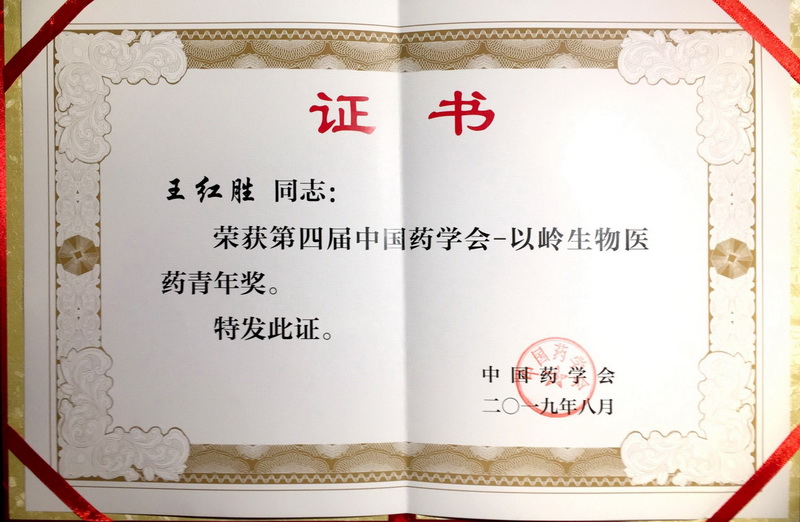 王紅勝榮獲以嶺生物醫(yī)藥青年獎(jiǎng)