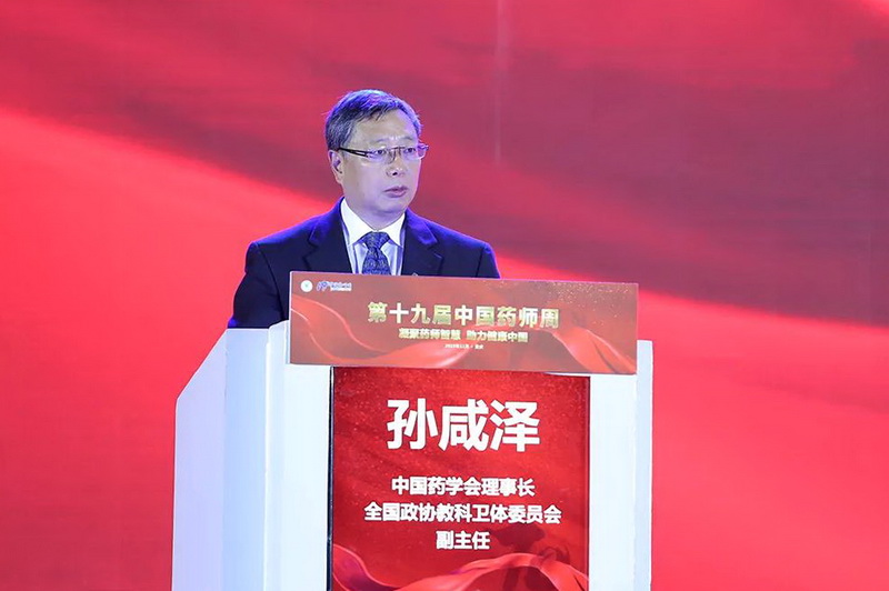 中國藥學(xué)會(huì)理事長、全國政協(xié)教科衛(wèi)體委員會(huì)副主任孫咸澤致開幕辭