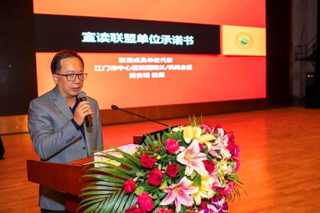 江門市中心醫(yī)院副院長/機(jī)構(gòu)主任黃炎明教授宣讀《成員單位承諾書》