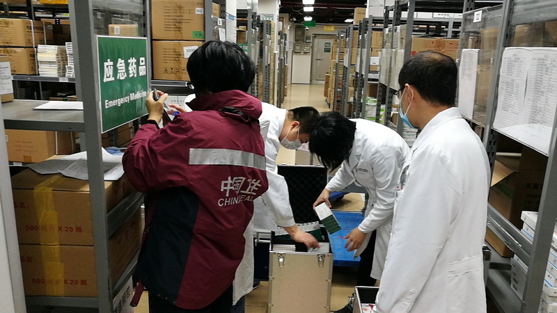 本會理事、國際應(yīng)急醫(yī)療隊(duì)隊(duì)員、省二醫(yī)院藥物臨床試驗(yàn)機(jī)構(gòu)盧慧勤主任,藥學(xué)部張聰副主任藥師(重癥醫(yī)學(xué)臨床藥師)、吉家興主管藥師(呼吸專業(yè)臨床藥師)三位藥學(xué)隊(duì)員接到任務(wù)后,在藥學(xué)部國家級青年文明號號手們的積極支援下,半小時(shí)就完成了藥品抽組任務(wù),并進(jìn)行了緊張的藥品準(zhǔn)備。本次醫(yī)療救援隊(duì)共攜帶藥品近7噸。