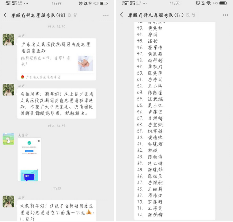 從歲末到年初,在藥房都能看到藥師們忙碌的身影。為積極做好新型冠狀病毒的防治工作,自武漢爆發(fā)疫情以來,醫(yī)院共計20多位藥師自發(fā)放棄春節(jié)假期,提前從老家趕返廣州,隨時待命。當(dāng)院黨委、團委發(fā)布面向全院招募“廣東省人民醫(yī)院抗新冠防疫志愿者”的公告后,藥學(xué)部康頤藥師志愿服務(wù)隊隊長張昕藥師第一個報名,并把公告內(nèi)容傳達(dá)到藥學(xué)部志愿者群。藥學(xué)部全體人員積極響應(yīng)黨中央的號召,黨員和團員青年立即行動起來,紛紛報名投身到抗擊疫情的行動中,有70余名藥師踴躍報名參加志愿者服務(wù)。在這場抗擊新冠肺炎的“阻擊戰(zhàn)”中,藥師們體現(xiàn)最美逆流,離開安全的家,只為堅守崗位,打贏抗疫大戰(zhàn)。