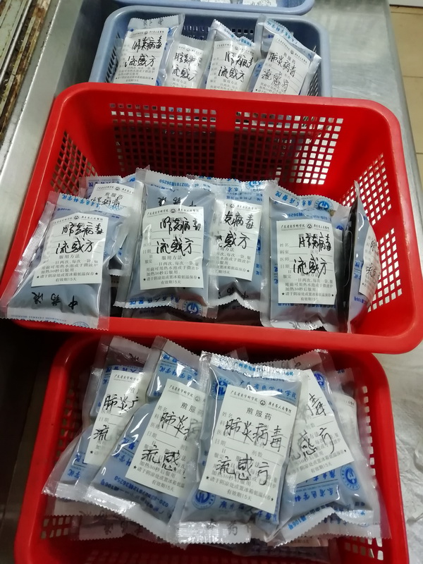 面對疫情,一線醫(yī)務(wù)人員沖鋒在前,藥學(xué)部發(fā)揮中醫(yī)保健作用,想方設(shè)法為一線醫(yī)務(wù)人員增鎧添甲。根據(jù)我院中醫(yī)專家組推薦的中藥方,藥學(xué)部中藥房同事馬上行動起來,配藥、泡藥、煎藥、成袋、送藥,沒有一絲的耽擱。黨員江武城藥師帶頭與另外幾位黨員同志親自把煎煮好的中藥送到奮戰(zhàn)在一線的醫(yī)務(wù)人員手中。即便是放假期間,藥學(xué)部仍然堅持煎煮預(yù)防流感中藥,送達(dá)一線醫(yī)務(wù)人員,為他們增加防護,踐行初心使命,踐行責(zé)任擔(dān)當(dāng),為抗擊新型冠病毒默默貢獻自己的一份力量。