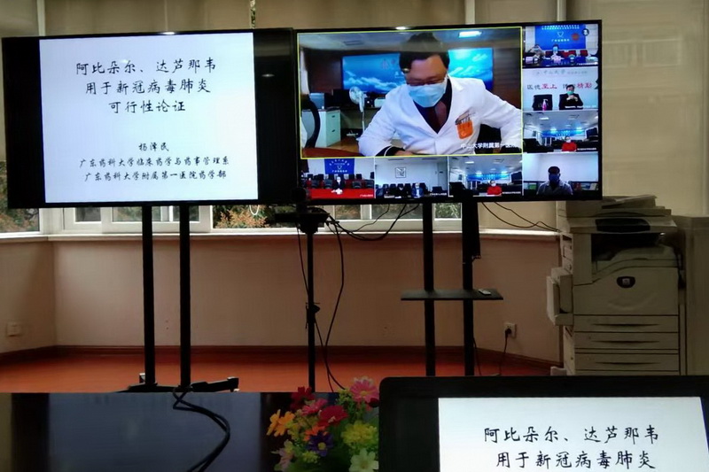 2020年2月6日深夜,受廣東省衛(wèi)生健康委的委派,楊澤民教授組織了以黨員同志為主的臨床藥學(xué)重點(diǎn)學(xué)科和高水平臨床藥學(xué)重點(diǎn)專科人員進(jìn)行“阿比朵爾、達(dá)蘆那韋用于新型冠狀病毒肺炎可行性論證”討論會(huì),經(jīng)過專業(yè)的論證,提出“阿比朵爾可試用于高危人群的預(yù)防和在嚴(yán)格觀察下試用于危重患者的治療”,得到各位專家和廣東省衛(wèi)健委相關(guān)領(lǐng)導(dǎo)的認(rèn)同。