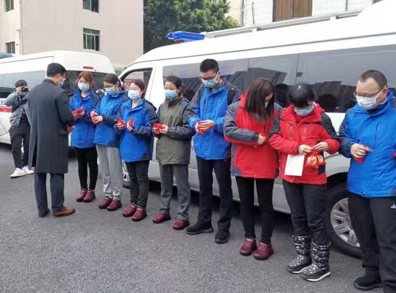 院領導給援助湖北荊州醫(yī)療隊的白衣勇士們贈送防疫香囊