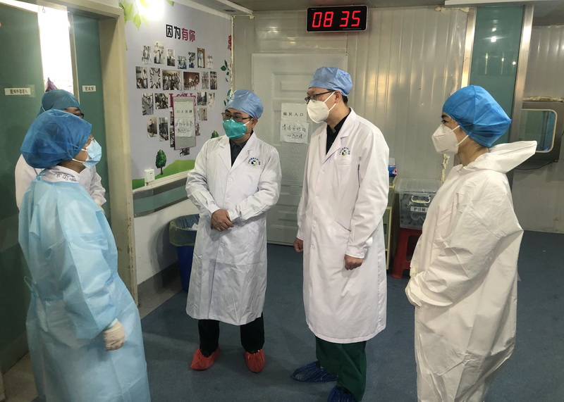 楊主委與醫(yī)療組在定點(diǎn)收治醫(yī)院開展工作