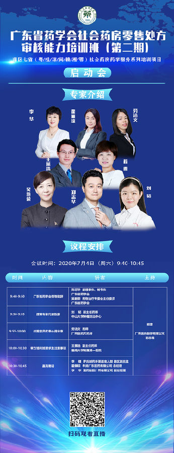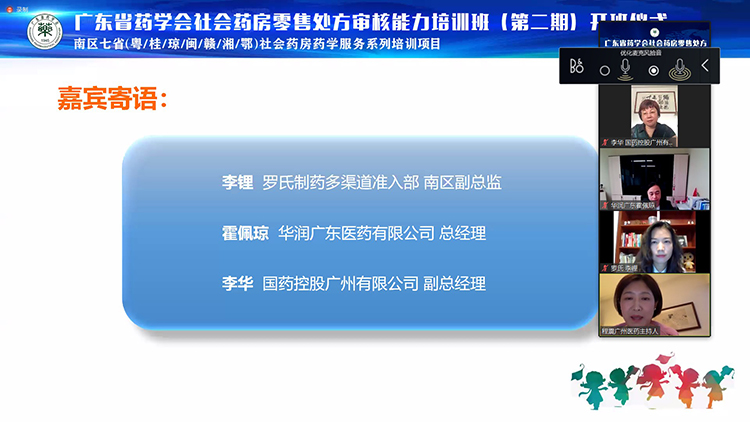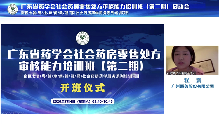 為加強社會藥房一線藥師的處方審核專業(yè)技能,推進社會藥房的發(fā)展,更好地服務于廣大患者,2020年7月4日,由廣東省藥學會主辦、上海羅氏制藥有限公司、廣州醫(yī)藥大藥房有限公司、國藥控股廣州有限公司、廣東德信行大藥房連鎖有限公司聯合協辦的“廣東省藥學會社會藥房零售處方審核能力培訓班(第二期)”正式開班。開班儀式由廣州醫(yī)藥股份有限公司副總裁程震主持。整場會議直播過程氣氛熱烈,受到廣泛關注,共計1000多人次上線參與觀看。