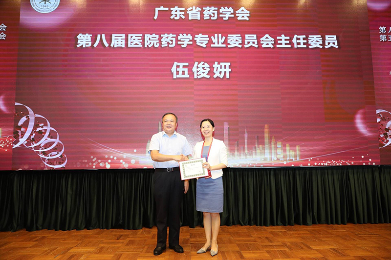 陳德偉理事長(zhǎng)為第八屆醫(yī)院藥學(xué)專(zhuān)委會(huì)主任委員伍俊妍主任頒發(fā)聘書(shū)