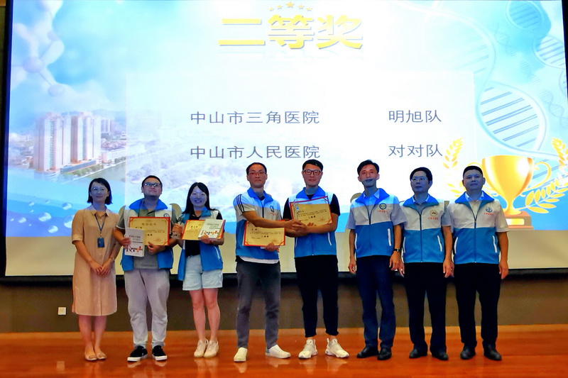 初賽決出8支戰(zhàn)隊(duì)進(jìn)入半決賽。進(jìn)入半決賽的8支戰(zhàn)隊(duì)分2組進(jìn)行PK,最終兩組得分第1名直接晉級(jí)決賽,剩余6支隊(duì)伍按半決賽總分排名第一的也晉級(jí)決賽。進(jìn)入總決賽的三支隊(duì)伍通過(guò)搶答形式?jīng)Q出名次。經(jīng)過(guò)3個(gè)多小時(shí)緊張的比拼,產(chǎn)生了一、二、三等獎(jiǎng)。由中山市博愛(ài)醫(yī)院鄒劍成主任宣讀比賽結(jié)果如下: