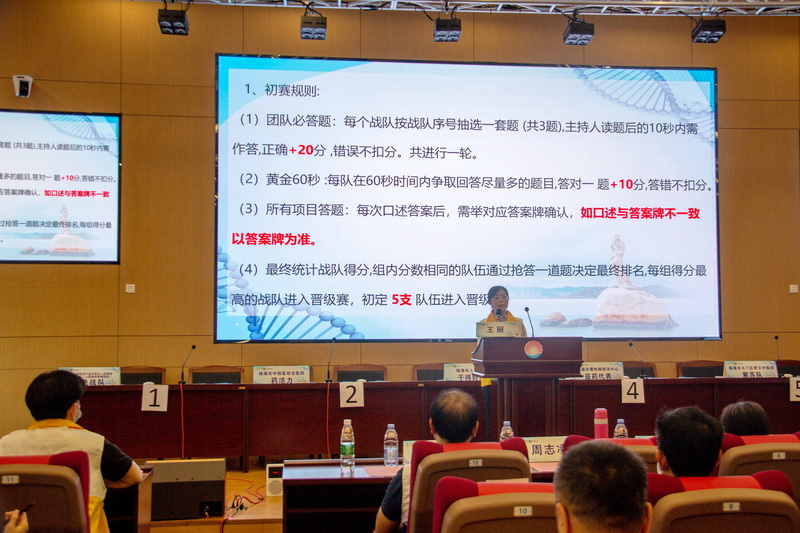珠海市婦幼保健院藥學(xué)部王麗副主任宣讀比賽規(guī)則,珠海市婦幼保健院楊眉、楊富恒藥師主持比賽環(huán)節(jié)。比賽分為初賽和晉級(jí)賽,分別有團(tuán)隊(duì)必答題、黃金60秒、團(tuán)隊(duì)搶答題等環(huán)節(jié),其中穿插觀眾搶答題,體現(xiàn)了全員參與的活動(dòng)氛圍。