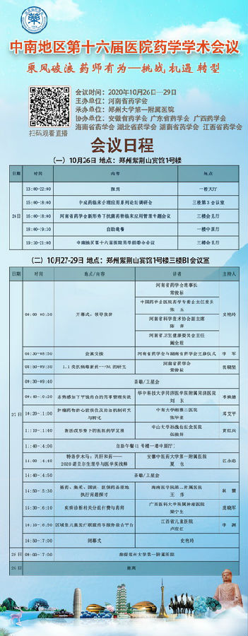 為推動我國新醫(yī)改形勢下醫(yī)院藥學(xué)發(fā)展、促進(jìn)醫(yī)院藥學(xué)學(xué)科建設(shè),提升藥師專業(yè)技術(shù)水平和藥學(xué)服務(wù)能力,加強(qiáng)中南地區(qū)醫(yī)院藥學(xué)學(xué)術(shù)交流,由中南地區(qū)八省共同主辦,河南省藥學(xué)會承辦的“中南地區(qū)第十六屆醫(yī)院藥學(xué)學(xué)術(shù)會議”定于2020年10月26-29日在河南省鄭州市舉辦。