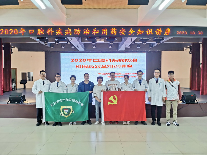 2020年是第32個(gè)“全國愛牙日”,為貫徹《“健康中國2030”規(guī)劃綱要》及《國務(wù)院關(guān)于健康中國行動(dòng)的意見》要求,細(xì)化落實(shí)國務(wù)院關(guān)于實(shí)施健康中國行動(dòng)之健康知識(shí)普及行動(dòng)意見,推動(dòng)我國健康事業(yè)的發(fā)展,開展學(xué)生健康危害因素監(jiān)測與評價(jià),加強(qiáng)學(xué)生近視、齲齒、肥胖等常見病防治工作。中山大學(xué)附屬第三醫(yī)院粵東醫(yī)院(以下簡稱粵東醫(yī)院)藥劑科聯(lián)合口腔科志愿者一行7人于2020年10月30日下午在梅州市特殊教育學(xué)校開展了2020年“口腔健康,全身健康,特殊兒童,特殊關(guān)愛”為主題的義診和安全用藥進(jìn)校園科普活動(dòng)。本次活動(dòng)分為科普授課和口腔檢查兩個(gè)環(huán)節(jié),吸引了梅州市特殊教育學(xué)校所有師生共200余人參加?;洊|醫(yī)院藥劑科麥海燕、吳志輝、葉豪3人參加。