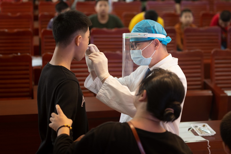 知識(shí)講座結(jié)束后,義診活動(dòng)隨著開展,由4位口腔科醫(yī)師組成的志愿者小分隊(duì),分2組,分別對現(xiàn)場學(xué)生進(jìn)行口腔檢查,記錄口腔有問題同學(xué)的信息和相關(guān)治療方法,信息采集完畢后交回給學(xué)校,并留下了聯(lián)系方式。