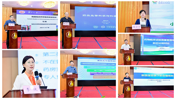 會(huì)議同時(shí)安排了精彩紛呈的學(xué)術(shù)分享。復(fù)旦大學(xué)藥學(xué)院馬國(guó)教授、沈陽(yáng)藥科大學(xué)陳玉文教授、中國(guó)人民解放軍南部戰(zhàn)區(qū)總醫(yī)院季波教授、中山大學(xué)腫瘤防治中心周寧寧教授、廣東藥科大學(xué)附屬第一醫(yī)院陳吉生教授、暨南大學(xué)藥學(xué)院程國(guó)華教授、廣州醫(yī)科大學(xué)附屬第二醫(yī)院王若倫教授分別從我國(guó)臨床藥學(xué)教育的發(fā)展現(xiàn)狀、監(jiān)管科學(xué)和科學(xué)監(jiān)管、火神山醫(yī)院藥事管理與藥學(xué)服務(wù)的實(shí)踐、免疫檢查點(diǎn)抑制劑的臨床應(yīng)用進(jìn)展、國(guó)家藥事管理質(zhì)量控制指標(biāo)分析、GCP新舊法規(guī)對(duì)比、新醫(yī)保目錄下的合理用藥等方面作了專題報(bào)告。