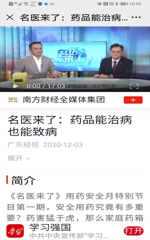 廣東省藥學(xué)會(huì)“安全用藥月”活動(dòng)系列--安全用藥科普宣傳走入廣東經(jīng)視、走進(jìn)《學(xué)習(xí)強(qiáng)國(guó)》