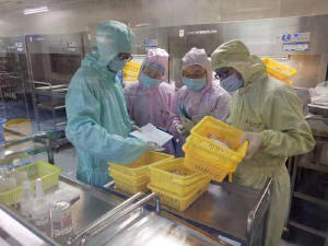 當(dāng)天早上七點(diǎn)左右,專家們到達(dá)評(píng)估現(xiàn)場(chǎng),與工作人員一同經(jīng)過更衣、換鞋、戴帽后,迅速開展了評(píng)估工作。