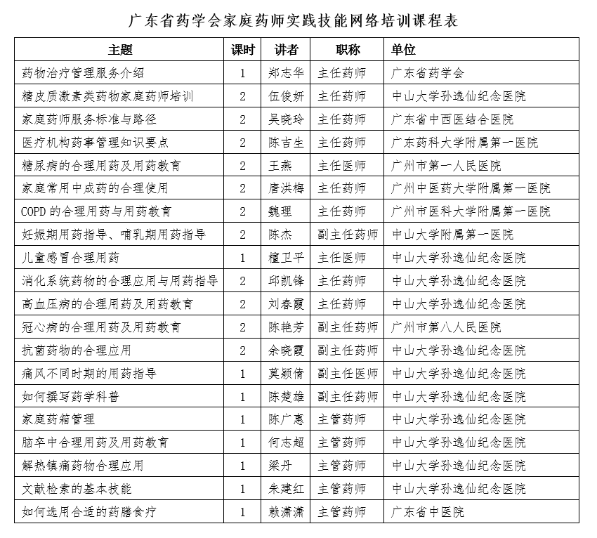 《廣東省藥學(xué)會家庭藥師實踐技能網(wǎng)絡(luò)培訓(xùn)》開課!