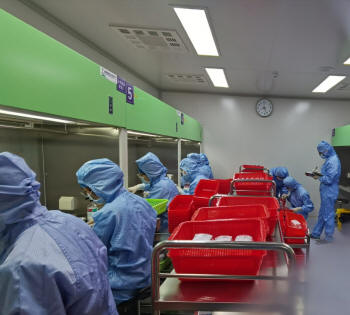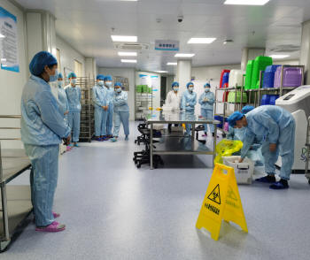 當(dāng)天早上七點(diǎn)半,在主管院長張遠(yuǎn)起副院長、藥學(xué)部林志繡部長、靜配中心負(fù)責(zé)人謝麗明等人的陪同下,專家們來到評估現(xiàn)場,先查看靜配中心周圍環(huán)境及采風(fēng)口位置。然后在我院靜配中心負(fù)責(zé)人的指引下,按照我院靜配中心著裝管理要求,進(jìn)行更衣、換鞋、戴帽后,即開展評估工作,現(xiàn)場查看工作流程及各方面的操作情況。三位專家首先進(jìn)入普通藥品調(diào)配間,查看調(diào)配人員的無菌規(guī)范操作情況;再進(jìn)入危害藥品調(diào)配間,根據(jù)危害藥品調(diào)配規(guī)范,檢查調(diào)配過程及個人防護(hù);緊接著在成品輸液核對區(qū),檢查成品輸液的復(fù)核流程及質(zhì)量情況,了解自動化設(shè)備的運(yùn)行情況;來到清洗間檢查各種用具的清洗消毒規(guī)程;在審方室考評了審方藥師的日常工作、醫(yī)囑審核軟件及標(biāo)簽設(shè)計(jì)等?,F(xiàn)場檢查工作完成后,即開始對文件資料的查看,對各項(xiàng)規(guī)章制度、操作規(guī)程、應(yīng)急預(yù)案、質(zhì)量持續(xù)改進(jìn)等內(nèi)容逐一審查,期間隨機(jī)抽查工作人員進(jìn)行現(xiàn)場提問及進(jìn)行細(xì)胞毒藥物溢出處理演練。