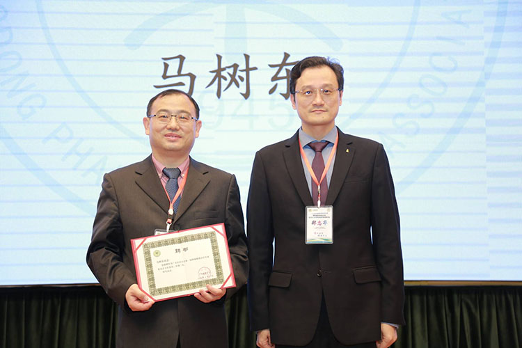 鄭志華副理事長(zhǎng)兼秘書長(zhǎng)為馬樹東主任委員頒發(fā)聘書