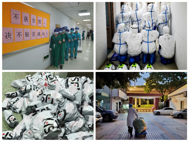 6月10日,藥學(xué)部主任陳艷芳與鄭曉霞、申坤、汪明藥師主動報名參加1號住院樓五層隔離病區(qū)的終末消殺工作。當(dāng)晚8點,4名藥學(xué)人員接到命令后,不顧忙碌一天工作的疲憊,火速趕回醫(yī)院,按照院感防控指引及工作流程,對隔離住院樓進行終末消毒。消毒工作任務(wù)重、時間緊、責(zé)任重大,消毒用雙氧水噴霧不斷刺激他們的眼睛、呼吸道,令人眼淚直流、嗓子干癢,可他們一干就是六、七個小時,等脫掉防護服時才發(fā)現(xiàn)已是凌晨三點。但他們毫無怨言,第二天8點又準(zhǔn)時帶上設(shè)備投入到新一輪消殺工作中,持續(xù)到晚上八九點圓滿完成消殺任務(wù)。院感防控是醫(yī)院工作重中之重,藥師們不畏艱險,深入一線,用勇氣、毅力和汗水筑牢了醫(yī)院院感防護的嚴(yán)密防線。