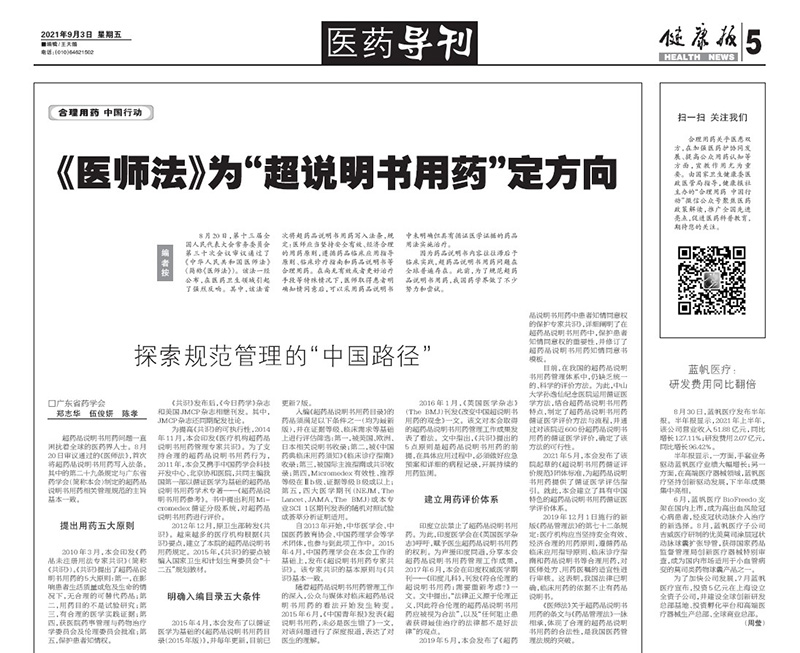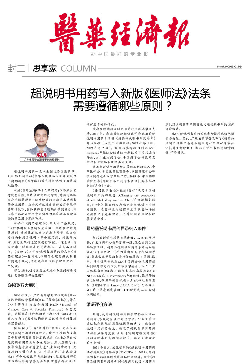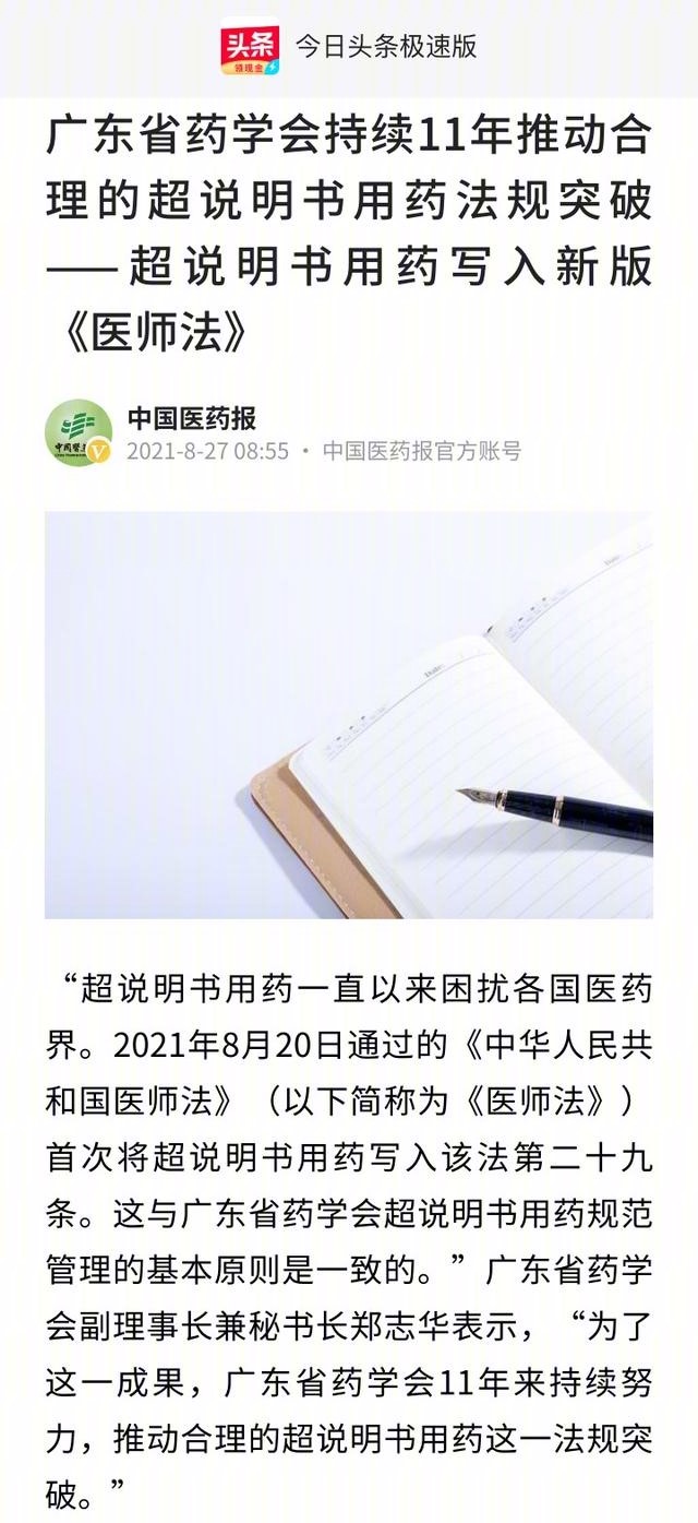 詳情請見鏈接——廣東省藥學會持續(xù)11年推動的規(guī)范超說明書用藥工作被寫入新版《醫(yī)師法》: