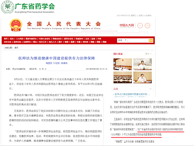 全國人大全媒體發(fā)文充分肯定廣東省藥學(xué)會(huì)超說明書用藥規(guī)范管理工作