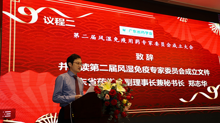 鄭志華副理事長(zhǎng)兼秘書(shū)長(zhǎng)宣讀第二屆風(fēng)濕免疫用藥專(zhuān)家委員會(huì)成立文件