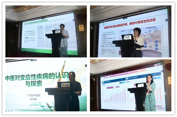 成立儀式結(jié)束后,進(jìn)入到學(xué)術(shù)會議部分,中山大學(xué)附屬第三醫(yī)院張萍萍主任分享《兒童變應(yīng)原特異性免疫治療的探討和思考》,廣州市第一人民醫(yī)院馬為教授講授《奧馬環(huán)素在哮喘方面的研究》,廣州市婦兒中心劉文龍教授講授《中國變應(yīng)性鼻炎診療指南2022年修訂版更新要點解讀》,中山大學(xué)附屬第三醫(yī)院馮佩英主任講授《特應(yīng)性皮炎的診療進(jìn)展》,中山大學(xué)附屬第六醫(yī)院張敏教授分享《自身免疫性疾病累及腸道表現(xiàn)》及廣東省中醫(yī)院莫秀梅教授講授《中醫(yī)藥對變態(tài)反應(yīng)性疾病的認(rèn)知與探索》,內(nèi)容豐富多彩,線上、線下的參會專家都獲益良多。