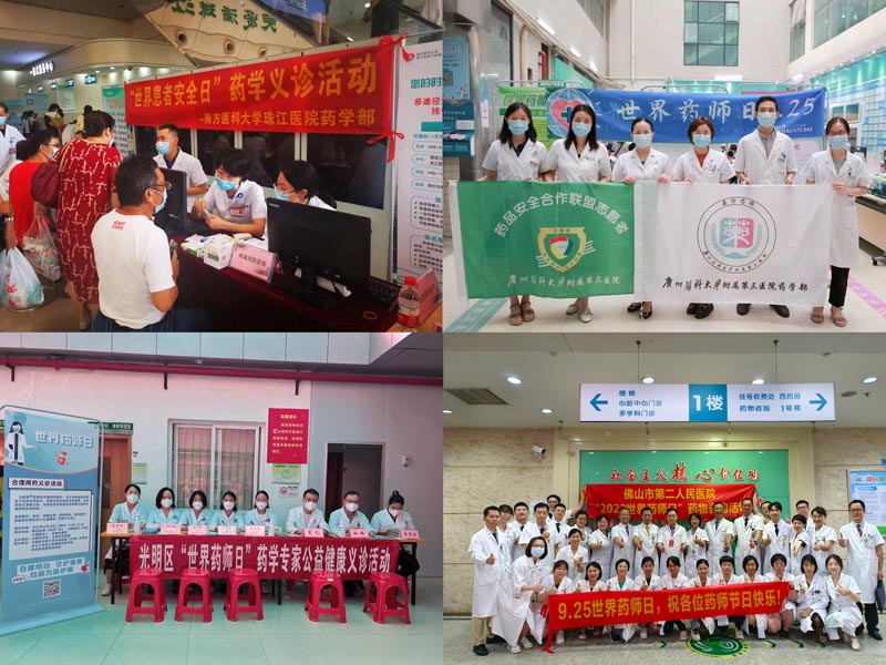 9月16日,南方醫(yī)科大學(xué)珠江醫(yī)院率先在醫(yī)院門診大廳開展義診活動,并同時在線上開展互聯(lián)網(wǎng)醫(yī)院藥學(xué)義診。9月21日廣州醫(yī)科大學(xué)附屬第一醫(yī)院在大坦沙院區(qū)門診大廳,聯(lián)合廣州市第一人民醫(yī)院開展慢性病安全用藥主題的義診及宣講活動。9月23日,中山大學(xué)孫逸仙紀(jì)念醫(yī)院、中山大學(xué)附屬第三醫(yī)院(三個院區(qū))、中山大學(xué)附屬第六醫(yī)院、廣州市花都區(qū)人民醫(yī)院、廣州市正骨醫(yī)院、廣州醫(yī)科大學(xué)附屬第二醫(yī)院/第三醫(yī)院/第五醫(yī)院、普寧市人民醫(yī)院、汕頭市中心醫(yī)院、汕頭大學(xué)醫(yī)學(xué)院第一附屬醫(yī)院、湛江中心人民醫(yī)院、中山市人民醫(yī)院14家工作站分別在各自院區(qū)內(nèi)開展大型義診活動。9月25日,廣東省人民醫(yī)院、廣東省工傷康復(fù)中心、中國人民解放軍南部戰(zhàn)區(qū)總醫(yī)院、中山大學(xué)附屬第一醫(yī)院、南方醫(yī)科大學(xué)南方醫(yī)院、暨南大學(xué)附屬第一醫(yī)院、廣州中醫(yī)藥大學(xué)第一附屬醫(yī)院、廣東藥科大學(xué)附屬第一醫(yī)院、廣州市婦女兒童醫(yī)療中心、廣州市胸科醫(yī)院、深圳市人民醫(yī)院、深圳市羅湖醫(yī)院集團(tuán)、南方醫(yī)科大學(xué)深圳醫(yī)院、中山大學(xué)孫逸仙紀(jì)念醫(yī)院深汕中心醫(yī)院、廣東省中西醫(yī)結(jié)合醫(yī)院、佛山市第二人民醫(yī)院、佛山市南海區(qū)人民醫(yī)院、東莞市松山湖中心醫(yī)院、東莞市濱海灣中心醫(yī)院、江門市第三人民醫(yī)院、惠州市中心人民醫(yī)院、惠州市第一人民醫(yī)院、惠州市第一婦幼保健院、惠州市第三人民醫(yī)院、惠州市第二婦幼保健院、惠東縣人民醫(yī)院、龍門縣人民醫(yī)院、廣東省人民醫(yī)院河源醫(yī)院、河源市深河人民醫(yī)院、河源市中醫(yī)院、河源市婦幼保健院、龍川縣人民醫(yī)院、中山市第二人民醫(yī)院、中山市中醫(yī)院、中山市博愛醫(yī)院、中山市三角醫(yī)院、中山市火炬開發(fā)區(qū)人民醫(yī)院、中山市東鳳人民醫(yī)院、中山市南朗醫(yī)院、中山陳星海中西醫(yī)結(jié)合醫(yī)院、中山市坦洲人民醫(yī)院、中山大附屬第五醫(yī)院、珠海市婦幼保健院、陽江市人民醫(yī)院、羅定市人民醫(yī)院、粵北人民醫(yī)院、佛山市南海區(qū)醫(yī)院管理局所屬各醫(yī)院、深圳光明區(qū)各級醫(yī)院、PSM惠州分站、韶關(guān)分站、汕頭分站等50多家單位加入到院內(nèi)義診隊伍。