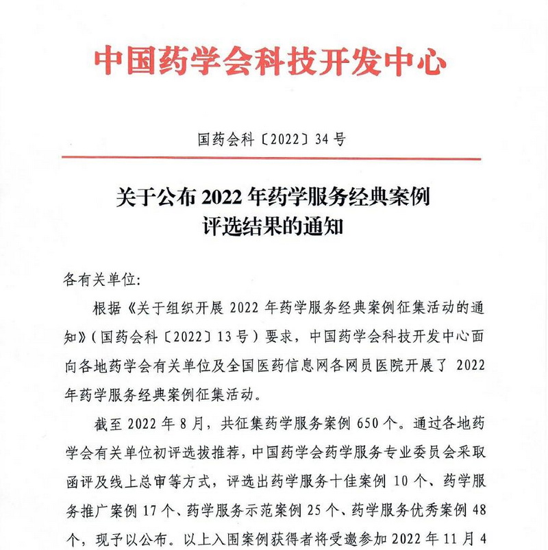 以上入圍案例獲得者將受邀參加2022年11月4日至6日在福建省福州市舉辦的第二十二屆中國藥師周大會。