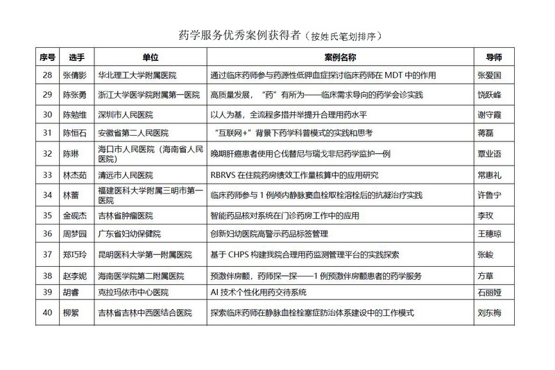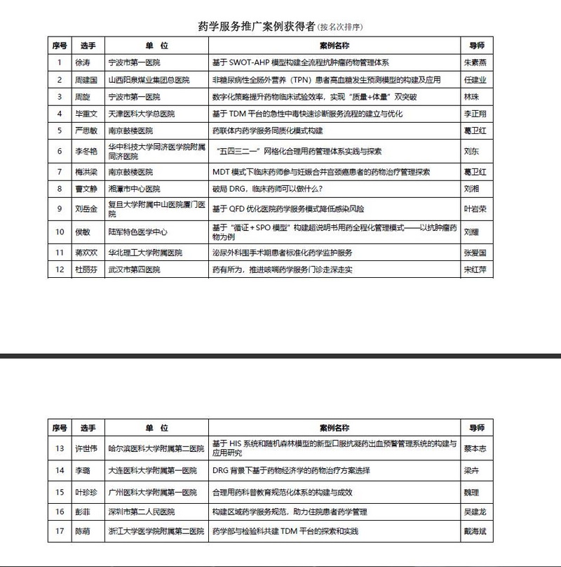 3個榮獲“藥學(xué)服務(wù)優(yōu)秀案例”為: