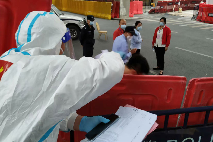 ※  組織突擊小隊(duì),馳援鳳陽街道。10月24日,大藥房黨支部接到上級(jí)黨委通知,要求緊急支援海珠區(qū)鳳陽街道抗疫任務(wù)。黨員志愿者王瑩同志代表大藥房參加突擊隊(duì)出征,勇?lián)厝?,守候一線。身披防護(hù)服的王瑩在次日清晨準(zhǔn)時(shí)抵達(dá)封控區(qū)后,便與小分隊(duì)一道,開始奔走在居民點(diǎn)之間,對(duì)100多戶居民逐戶上門進(jìn)行排查登記。許多居民對(duì)防疫要求不理解,部分居民甚至對(duì)防疫人員惡語相向。面對(duì)這種棘手情況,王瑩她們耐心進(jìn)行防疫政策宣傳解釋,勸導(dǎo)居民增強(qiáng)個(gè)人防護(hù)意識(shí);她與突擊小隊(duì)一道,全力配合社區(qū)開展各項(xiàng)服務(wù)保障工作,每天忙碌10個(gè)多個(gè)小時(shí)。