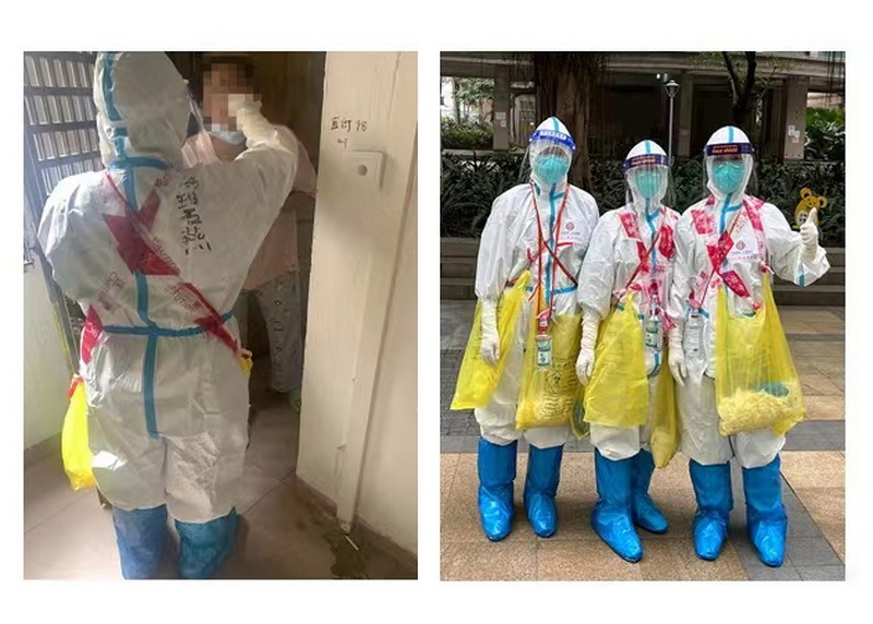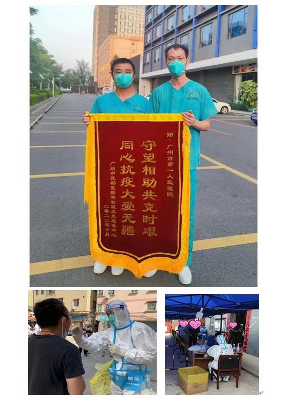 二、戰(zhàn)疫先鋒,樹立榜樣。57歲的周家明同志是藥劑科制劑室的資深藥師和老黨員,疫情以來,他已累計參加38次全員核酸采樣任務(wù),多次報名參加社區(qū)疫情防控工作,協(xié)助居委會黨群工作站做好小區(qū)進出口人員信息登記、體溫監(jiān)測、掃碼登記等工作,積極發(fā)揮黨員的先鋒模范作用。10月30日,接到醫(yī)院緊急通知支援海珠核心封控區(qū)抗疫任務(wù),他第一時間主動申請,火速加入抗疫一線。海珠區(qū)城中村房屋多為樓梯房,且樓房密度大,居住人口多,陽性病例頻發(fā),給核酸采樣工作帶來了極大不便和感染風險。周家明同志不畏困難,主動申請掃樓行動,每次回來都是汗水浸濕全身,高強度的工作沒有讓他退縮,在戰(zhàn)疫行動中身體力行、率先垂范,給團隊成員極大的鼓舞和信心!