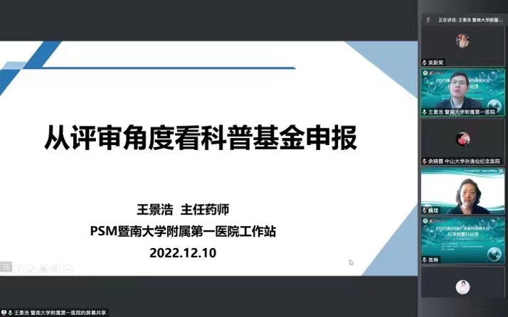 暨南大學(xué)附屬第一醫(yī)院主任藥師王景浩《從評審角度談如何申報PSM廣東科普基金》