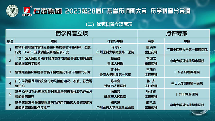 1、藥健康進(jìn)萬家—科普宣教能力人才培養(yǎng)廣東省選拔賽獲獎名單