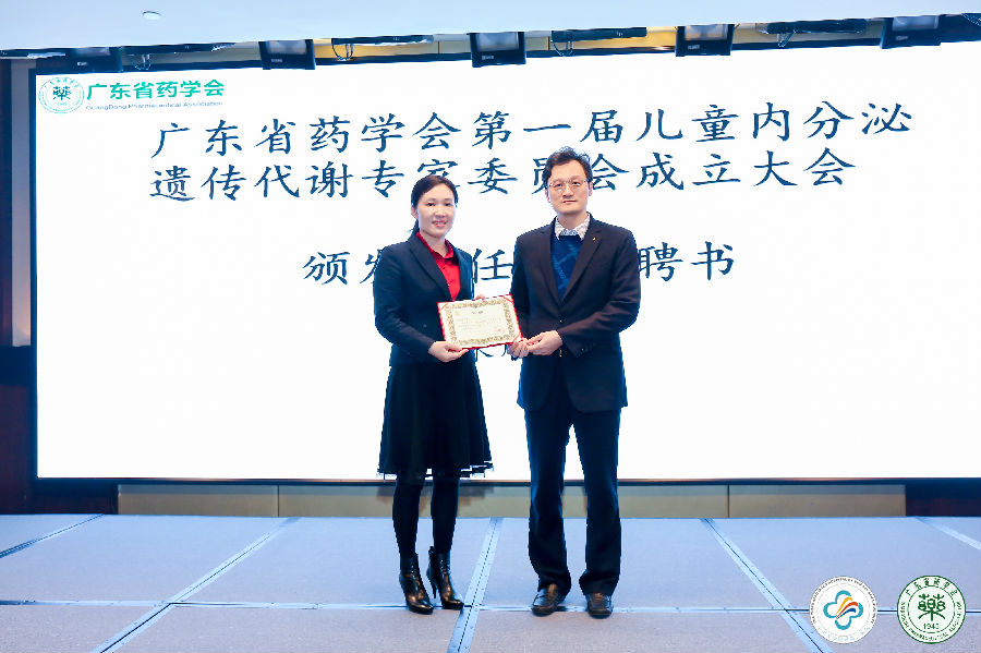 成立大會邀請了廣東省藥學會副理事長兼秘書長鄭志華為大會致辭,鄭秘書長祝賀廣東省藥學會兒童內(nèi)分泌遺傳代謝專家委員會的成立,殷切期盼專委會能繼續(xù)發(fā)揚廣東省藥學會從成立至今所保持的優(yōu)良傳統(tǒng),加強藥學與臨床的交流,帶領(lǐng)兒童內(nèi)分泌疾病藥物治療領(lǐng)域取得更大的創(chuàng)新和發(fā)展。接著,鄭秘書長宣讀了第一屆兒童內(nèi)分泌遺傳代謝專家委員會任職文件:朱順葉擔任主任委員,梁立陽擔任首席顧問,陳攀、陳秋莉、黃翠梅、康春華、藍惠荃、黎小妍、麥海燕、湯玉妍、溫志園9位擔任副主任委員;宣讀了37位常務(wù)委員及125位委員的名單;并為主委、首席顧問、副主委頒發(fā)證書。