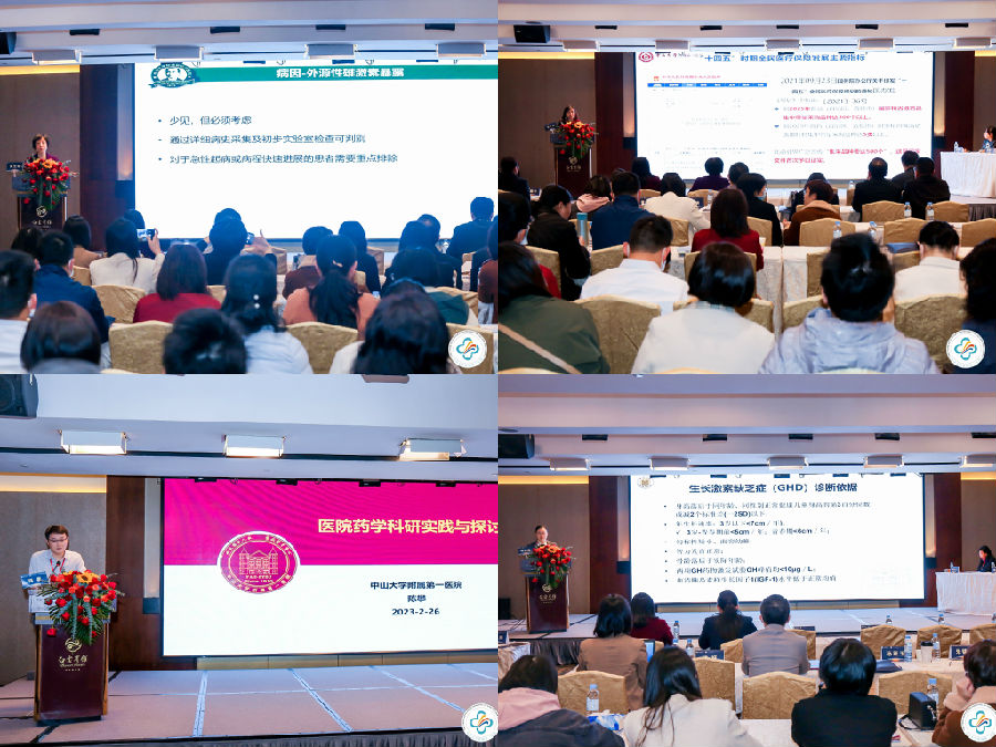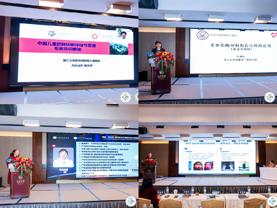 當天,還進行了內(nèi)容豐富的學術(shù)會議。會議邀請到多位來自廣東省內(nèi)及省外的專家學者進行精彩的學術(shù)講座。中山大學孫逸仙紀念醫(yī)院的梁立陽教授帶來《兒童及青少年期女孩男性化的評估和診斷策略》的講座,梁教授總結(jié)了女孩男性化的表現(xiàn),病因方面需重點關(guān)注腎上腺和卵巢疾病,并詳細講述了女孩男性化的診斷評估流程。來自華中科技大學同濟醫(yī)學院附屬同濟醫(yī)院的羅小平教授帶來了《GnRHa治療特發(fā)性中樞性性早熟患兒的長期療效和安全性的薈萃分析》的線上講座。羅教授分享了中樞性性早熟的最新進展,梳理了中樞性性早熟診斷和治療的規(guī)范流程并強調(diào)長期管理的重要性。中山大學附屬第六醫(yī)院黎小妍教授帶來了《集采之下合理用藥與藥學精細化管理》的講座,黎教授詳細講解了藥品集中采購的相關(guān)政策和制度,提出了實現(xiàn)藥品集采科學化、精細化管理的措施和路徑,以更好的滿足臨床需求,促進科學發(fā)展。中山大學附屬第三醫(yī)院麥海燕教授帶來《重組人生長激素長效制劑的應用》的講座,麥教授回顧了生長激素研發(fā)和制備的發(fā)展歷史,并對比長效生長激素不同制備技術(shù),U型結(jié)構(gòu)的PEG化學修飾技術(shù)具有生物活性、穩(wěn)定性及安全性高的明顯優(yōu)勢。中山大學附屬第一醫(yī)院陳攀教授帶來了《兒童人群的藥學科研》的講座,陳教授分享了他的科研經(jīng)驗和科研案例,為我們詳細地講解了集采背景下的藥品評價、真實世界藥物不良反應研究、個體化用藥研究和循證藥學的科研思路。在下午的學術(shù)會議中,中山大學附屬第一醫(yī)院陳秋莉教授帶來了《矮身材的診治規(guī)范》,陳教授詳細講述了矮小的病因、診斷及rhGH的規(guī)范化治療,并分享了最新的癌癥幸存者GH治療共識。浙江大學醫(yī)學院附屬兒童醫(yī)院董關(guān)萍教授帶來了《中國兒童肥胖診斷評估與管理專家共識解讀》的線上講座。董教授詳細講解了兒童超重和肥胖如何進行及時合理的診斷評估和治療,生活方式干預是治療的關(guān)鍵,同時提出對肥胖患兒的管理需要政府、學校、家庭和醫(yī)院的共同關(guān)注。中山大學附屬第一醫(yī)院李燕虹教授帶來了《來曲唑在兒科的應用》的講座。李教授為我們分享了她在臨床中對性早熟和青春期矮小的患兒使用芳香化酶抑制劑治療的經(jīng)驗,并結(jié)合最新文獻進行講解,該藥物治療屬于超說明書用藥,臨床醫(yī)生需嚴格把控,避免濫用,并需在用藥過程中密切監(jiān)測不良副作用。專委會主委、中山大學附屬第三醫(yī)院朱順葉教授為我們帶來了《粘多糖貯積癥Ⅱ型臨床診斷和治療專家共識》的精彩講座。朱教授對MPSⅡ型患者臨床表現(xiàn)、診斷、治療、遺傳咨詢與產(chǎn)前診斷等方面進行了歸納,酶替代治療是有效的治療方式,早診斷早治療可顯著改善患者預后、延緩疾病進展。最后,廣州市婦女兒童醫(yī)療中心毛曉健教授分享了《普拉德-威利綜合征診斷與治療面臨的挑戰(zhàn)》的講座。毛教授分享了她對普拉德-威利綜合征的診治經(jīng)驗,詳細講述了目前PWS在早期識別、早期診斷、合理治療、多學科管理方面所面臨的挑戰(zhàn)和應對措施,以盡可能改善PWS患兒的生存質(zhì)量。